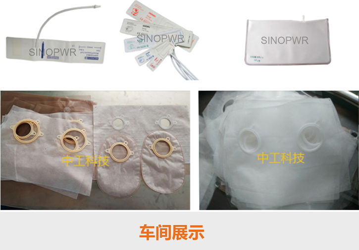 造口袋熱壓裁切機專用于造口袋,肛門袋的生產(chǎn),一次性完成熔接,裁切,成品取料。